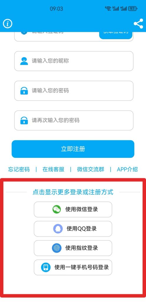 另外,提供微信登录、QQ登录、指纹登录、苹果IOS用户登录(苹果手机适用)、一键手机号码登录等。
